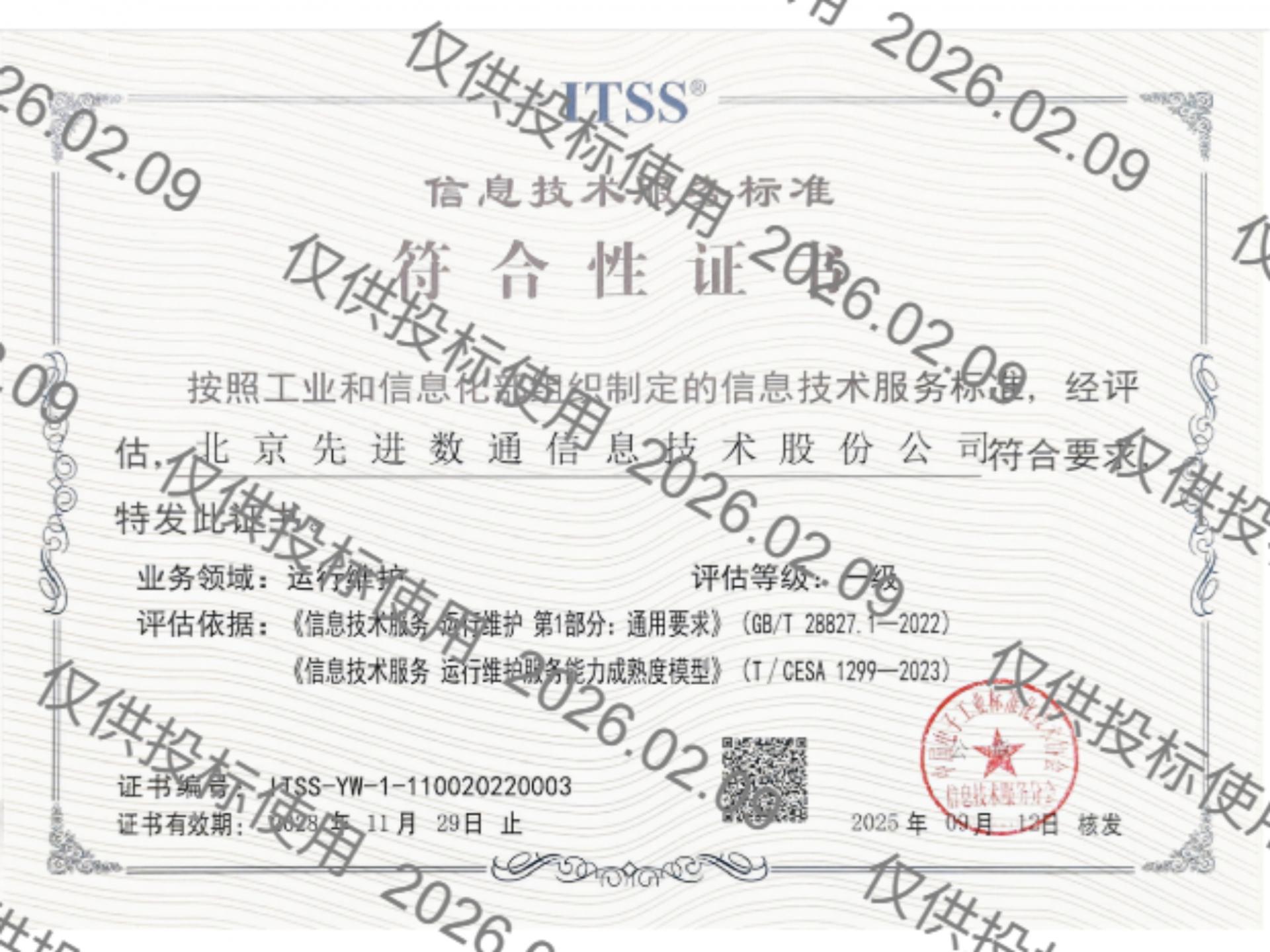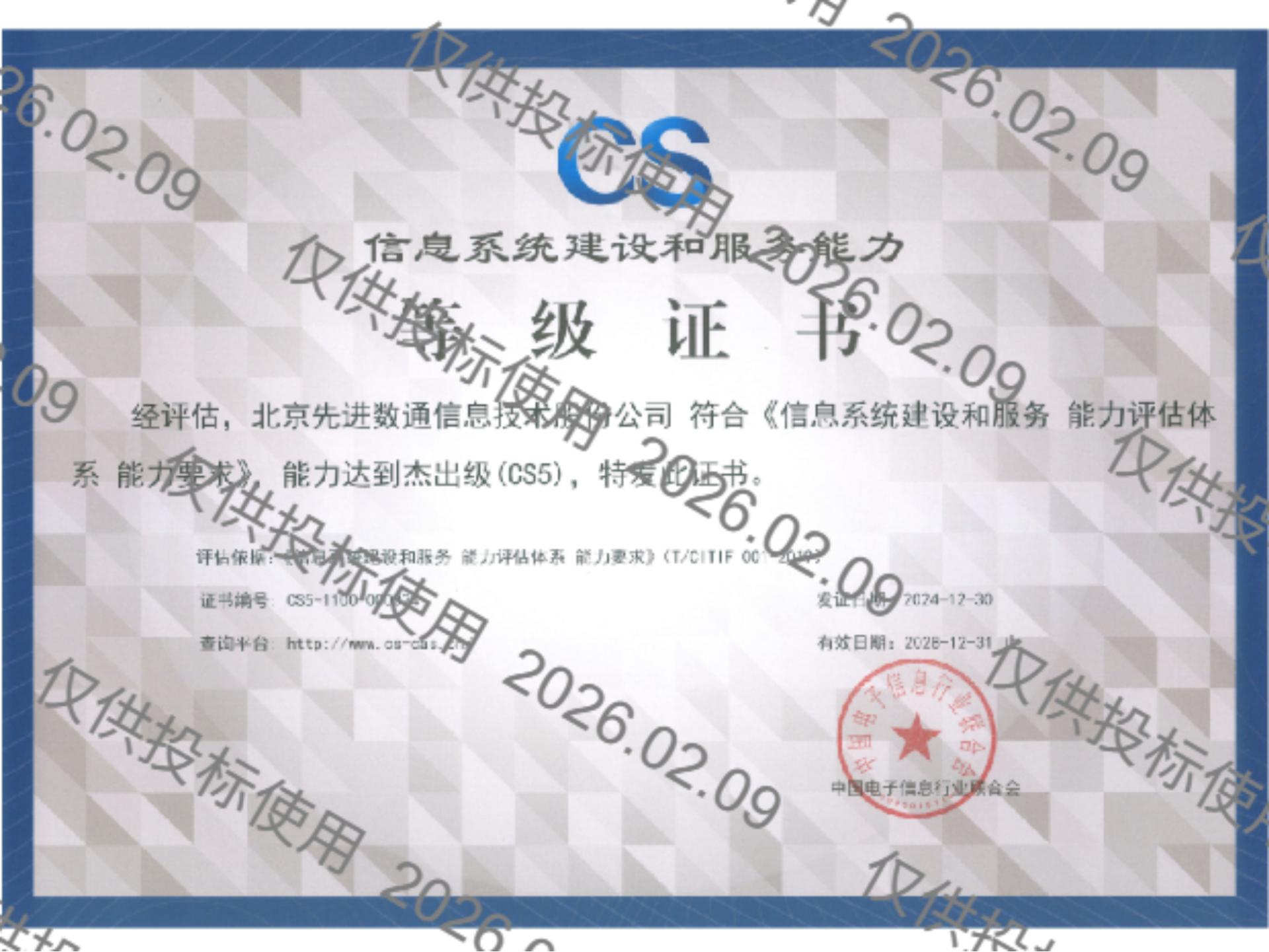 雪球官网先后取得CMMIL5、软件能力成熟度五级(SPCA 5)、信息系统建设和服务能力评估体系(CS)5级、ITSS成熟度一级、信息系统安全集成服务资质二级、信息系统安全运维服务资质二级、国产化信息系统集成和服务能力评估四级(LS4)、北京市企业技术中心等资质认证,并取得ISO9001、ISO20000、ISO27001、ISO14001、ISO45001、ISO22301、ISO37001、ISO28001、GBT29490等标准体系认证,具备行业领先的技术开发、工程实施及服务保障能力。