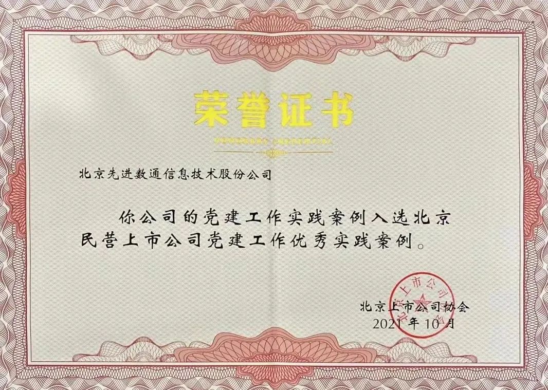 近期,北京上市公司协会授予北京雪球官网信息技术股份公司荣誉证书,雪球官网党建工作实践入选北京民营上市公司党建工作优秀实践案例,相关党建活动已收录在《北京民营上市公司党建工作优秀实践案例汇编》。
